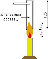 | 1 | Образец располагается вертикально, высота пламени 20 мм (рис. 2): самогашение происходит менее, чем за 30 сек. после удаления пламени; горящие капли не допускаются; послесвечение - максимум 60 сек. | |