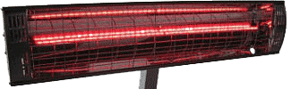 Излучатели представляют собой кварцевые трубки с резистивной спиралью внутри. Тепловое излучение, исходящее от нагревательного элемента поглощается окружающими предметами, которые разогреваясь отражают тепло, в результате этого повышается и температура воздуха.