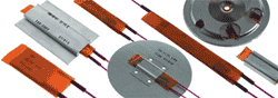 Есть варианты крепления к поверхности с помощью самоклеящейся пленки. При оптимальной теплопередаче рабочая температура достигает 200°C (краткосрочно до 230°C). Обычно применяются для отопления помещений, в системах «теплый пол», в защитах от обледенения, в медицинской, пищевой и аэрокосмической промышленностях.