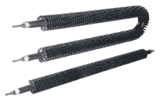 Их отличительная особенность — наличие металлических пластин — ребер. Оребрение намного увеличивает рабочую поверхность и теплоотдачу ТЭНа. Применяются для нагрева потока воздуха или газа в промышленных и бытовых электрокалориферах, конвекторах, тепловых пушках и в других установках.