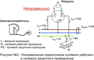 В жилых и общественных зданиях линии групповой сети, прокладываемые от групповых щитков до штепсельных розеток, должны выполняться трехпроводными (фазный, нулевой рабочий и нулевой защитный проводники). Питание стационарных однофазных электроприемников следует выполнять трехпроводными линиями. При этом нулевой рабочий и нулевой защитный проводники не следует подключать на щитке под один контактный зажим».