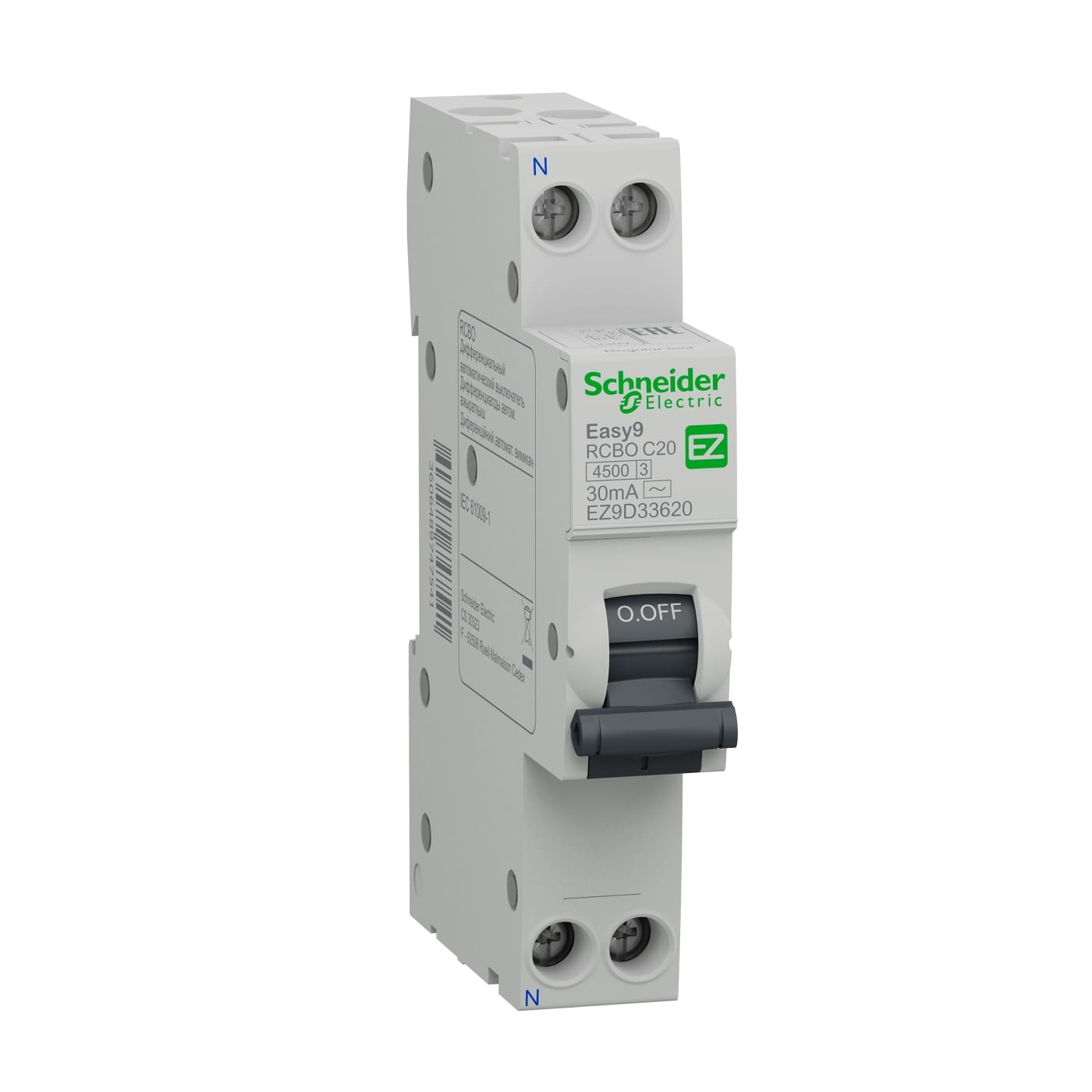 Дифференциальный автомат Easy9 EZ9D33620 1П+Н 20А 30мА С АС 4.5кА 230В