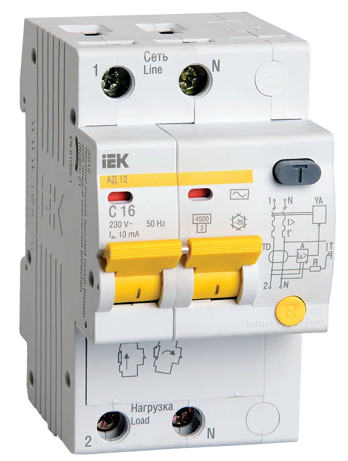 Диф. автомат АД12 2П 16А 10мА ИЭК