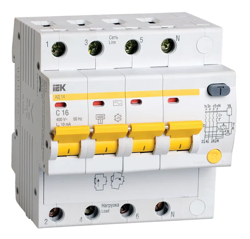 Диф. автомат АД14 4П 16А 10мА ИЭК