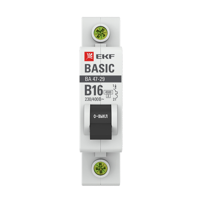 Автоматический выключатель ВА47-29 1Р 16А (B) 4.5кА EKF mcb4729-1-16-B