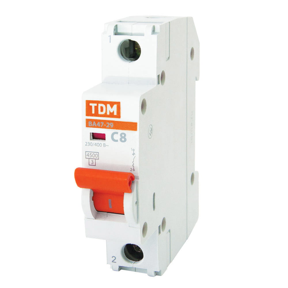 Автоматический выключатель ВА47-29 1Р 8А 4.5кА х-ка С TDM SQ0206-0071