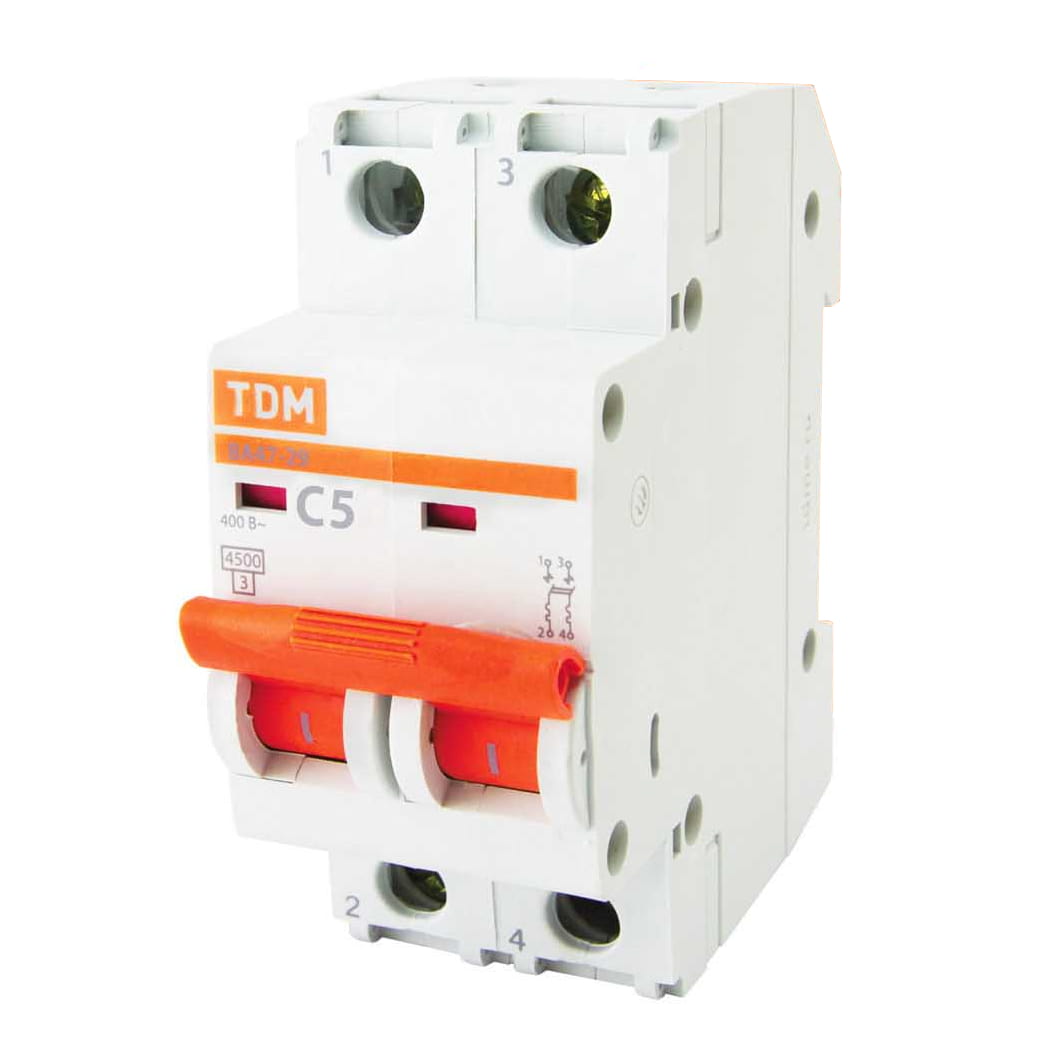 Автоматический выключатель ВА47-29 2Р 5А 4.5кА х-ка С TDM SQ0206-0088