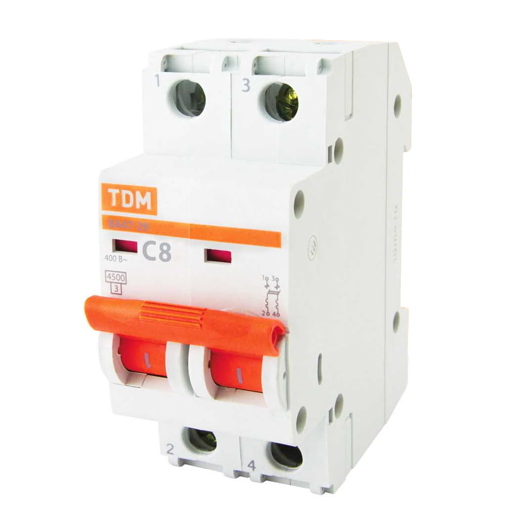 Автоматический выключатель ВА47-29 2Р 8А 4.5кА х-ка С TDM SQ0206-0090