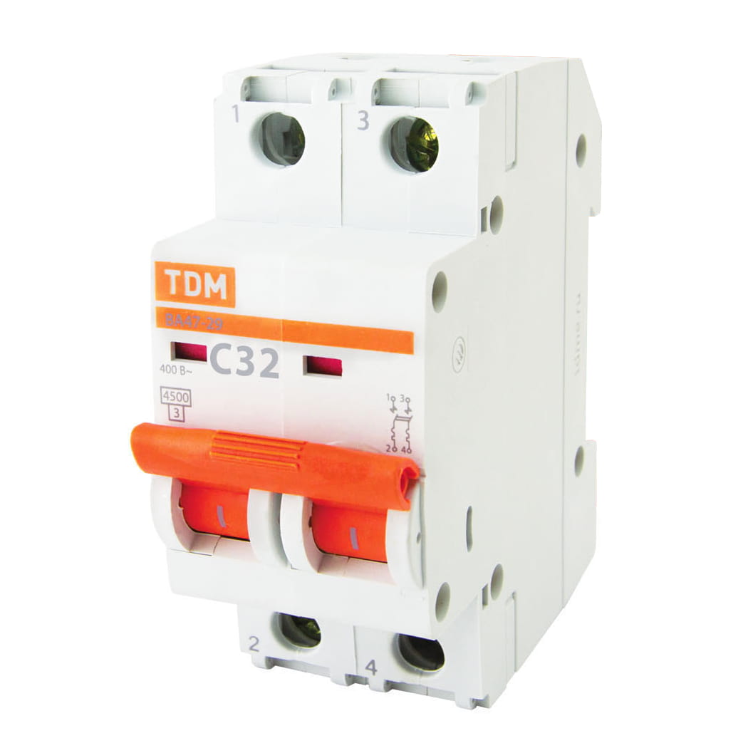 Автоматический выключатель ВА47-29 2Р 32А 4.5кА х-ка С TDM SQ0206-0096