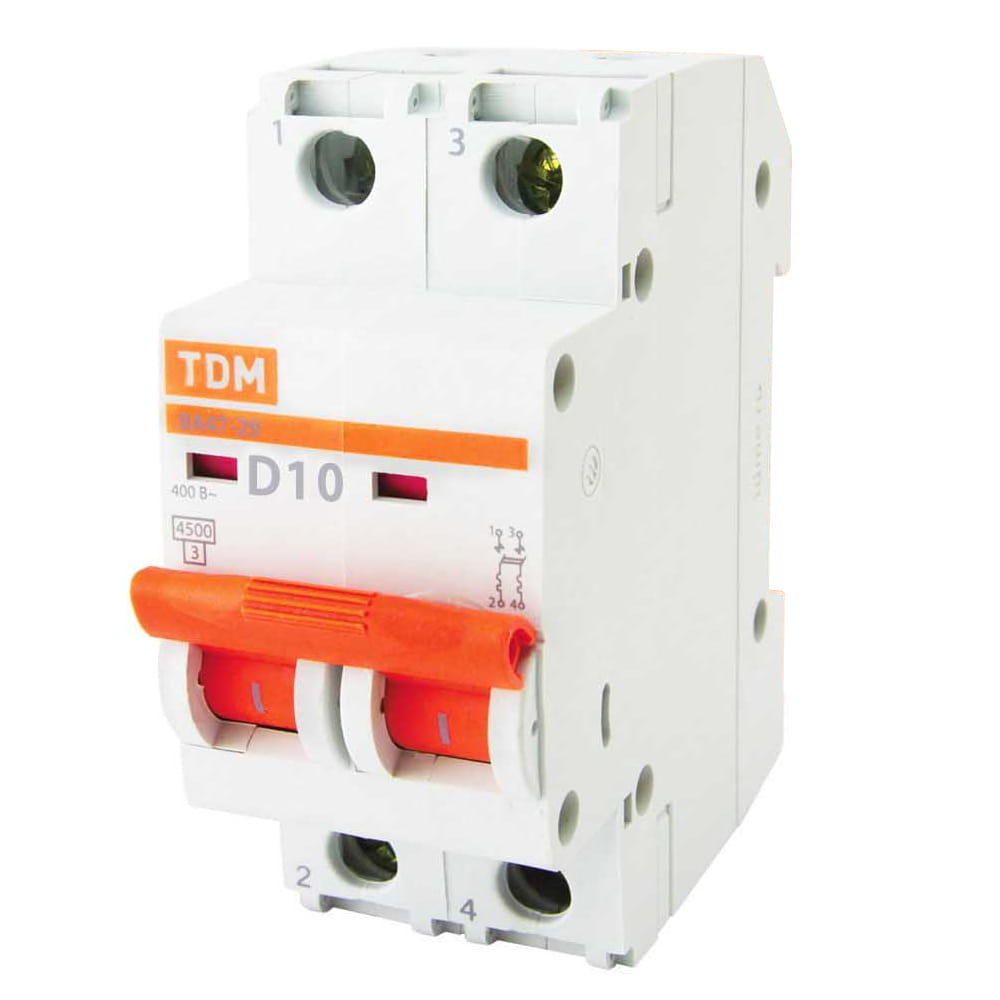 Автоматический выключатель ВА47-29 2Р 10А 4.5кА х-ка D TDM SQ0206-0155
