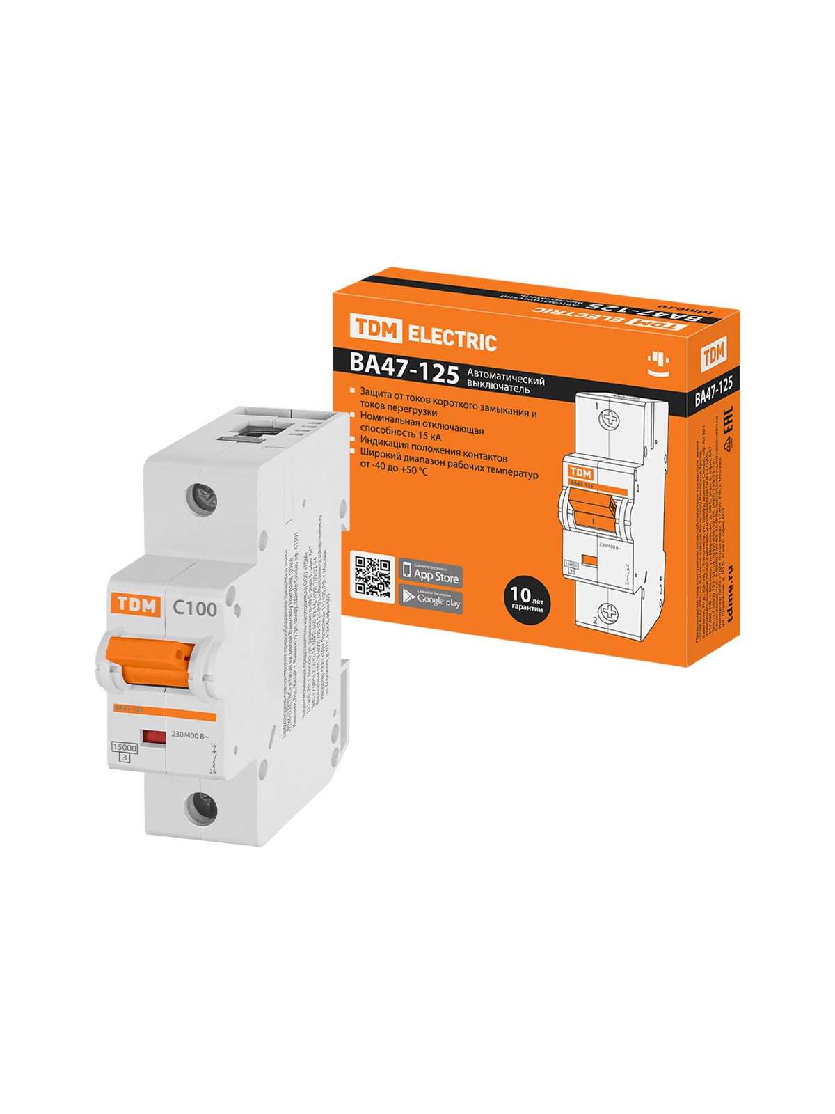 Авт. выкл. ВА47-125 1Р 100А 15кА х-ка С TDM SQ0208-0059