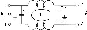 Электрическая емкостьCX: 0.1мкФ, CY: 2х3300 пФ