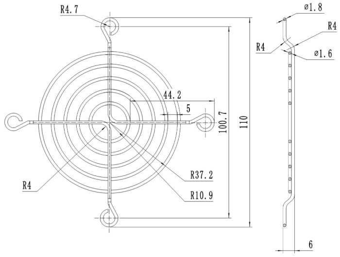 Смонтированная на вентилятор решетка обеспечивает защиту IP2X, предотвращая доступ к опасным движущимся частям вентилятора пальцем и защищая монтажника от получения травмы.
