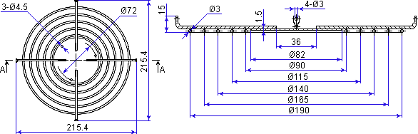 Устанавливается в задней части тепловентилятора и служит для предотвращения попадания посторонних предметов в рабочую зону. Решетка крепится на 4 винта М3.