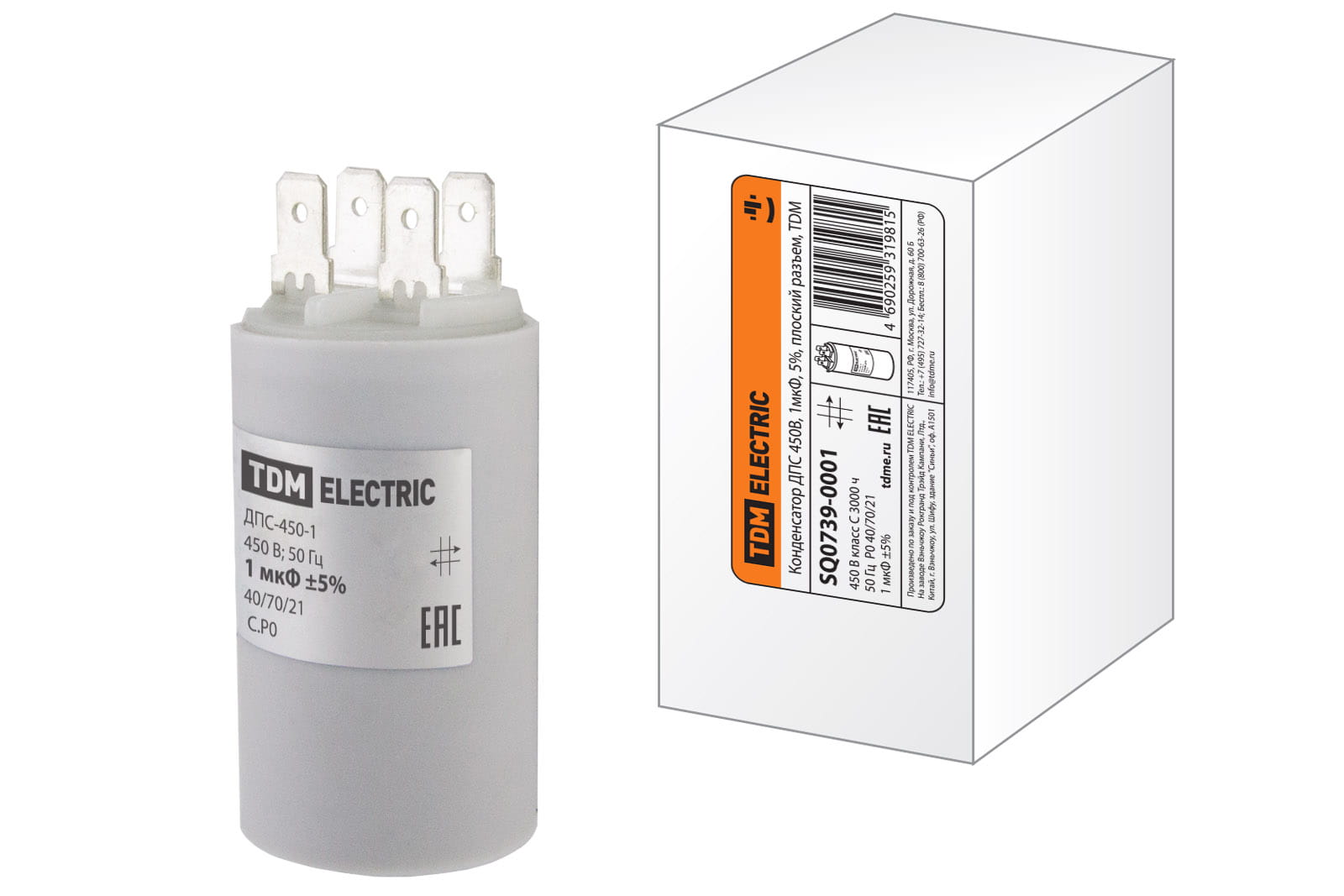Конденсатор ДПС 450В, 1мкФ, 5%, плоский разъем