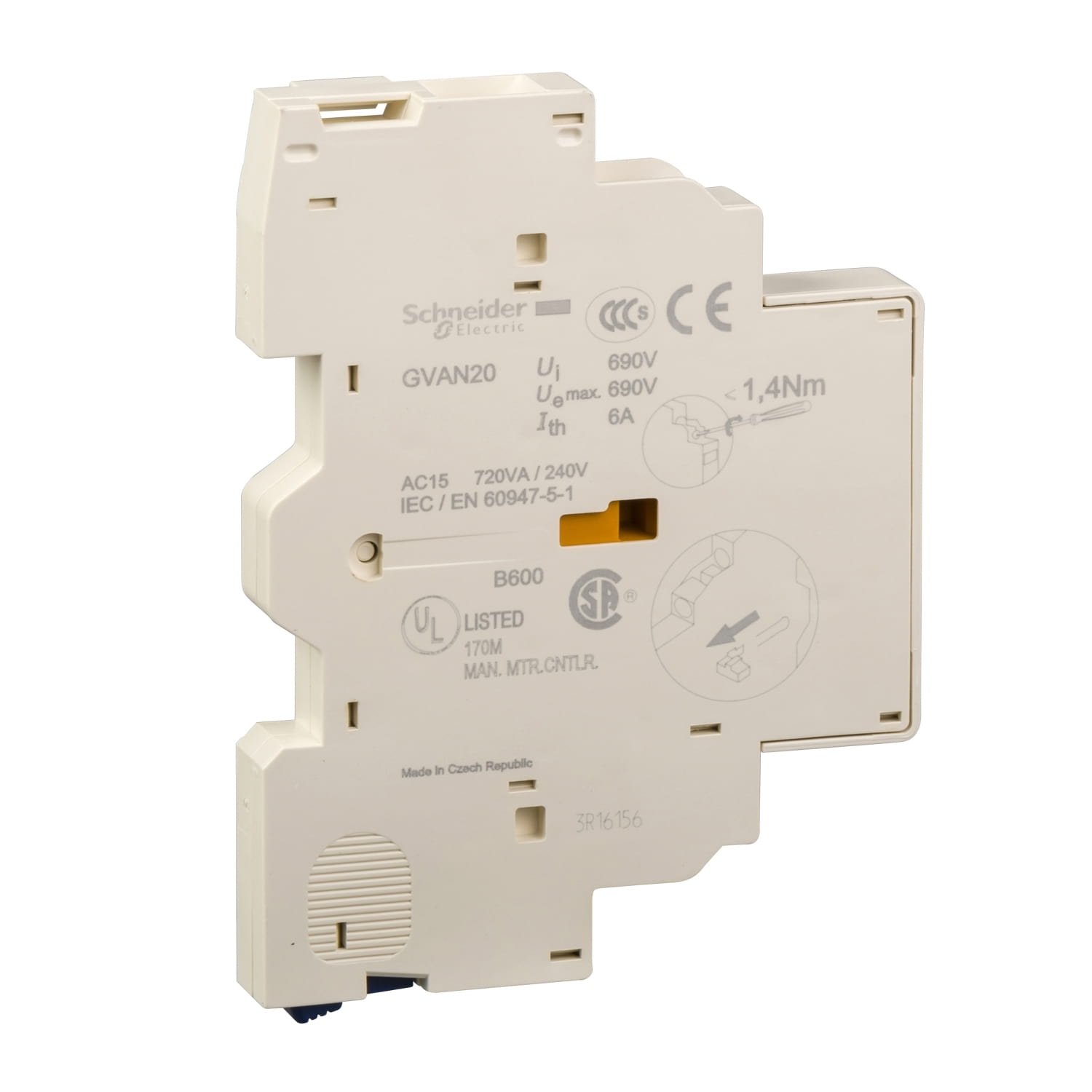 For use with TeSys GV2, GV3 series. Mounting location - left side.