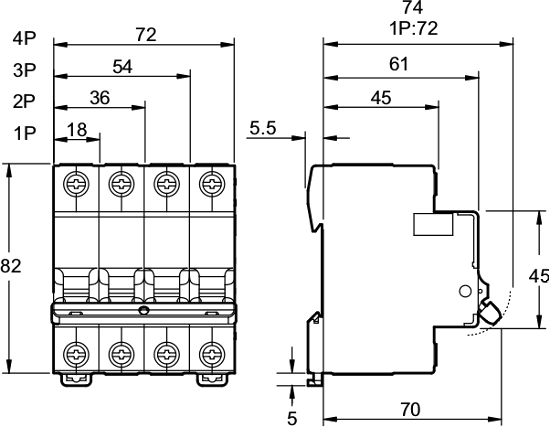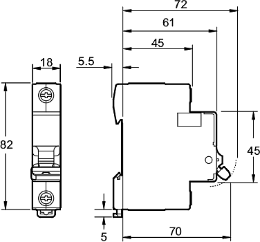 [Ics] rated service breaking capacity4.5 kA 100 % x Icn at 230 V AC 50/60 Hz conforming to IEC 60898-1