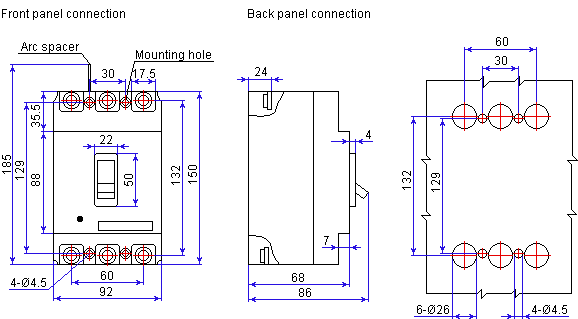 Circuit breaker AM1-100L dimensions