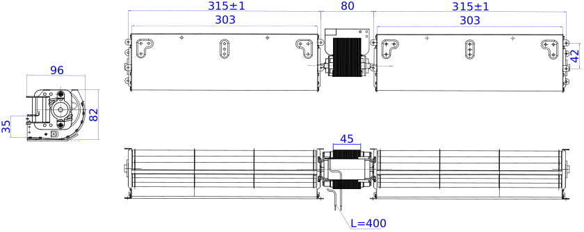 Cross-flow fan ES-EA06030R23 with 230VAC supply voltage creates uniform directional airflow by means of a tangential fan wheel.