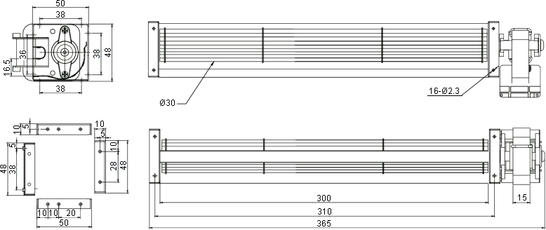 ES-03029R23 cross flow fan dimensions