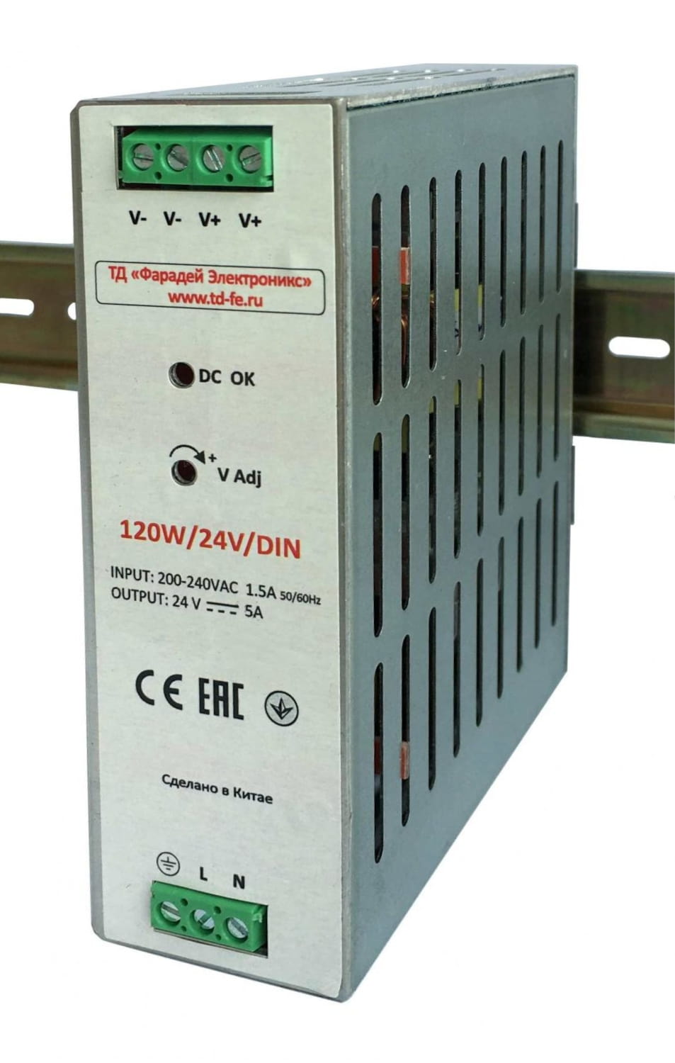 Power supply 120W/12-24V/DIN is designed for mounting on a DIN rail. Designed for automation systems. Can be used to power 24V DC appliances.