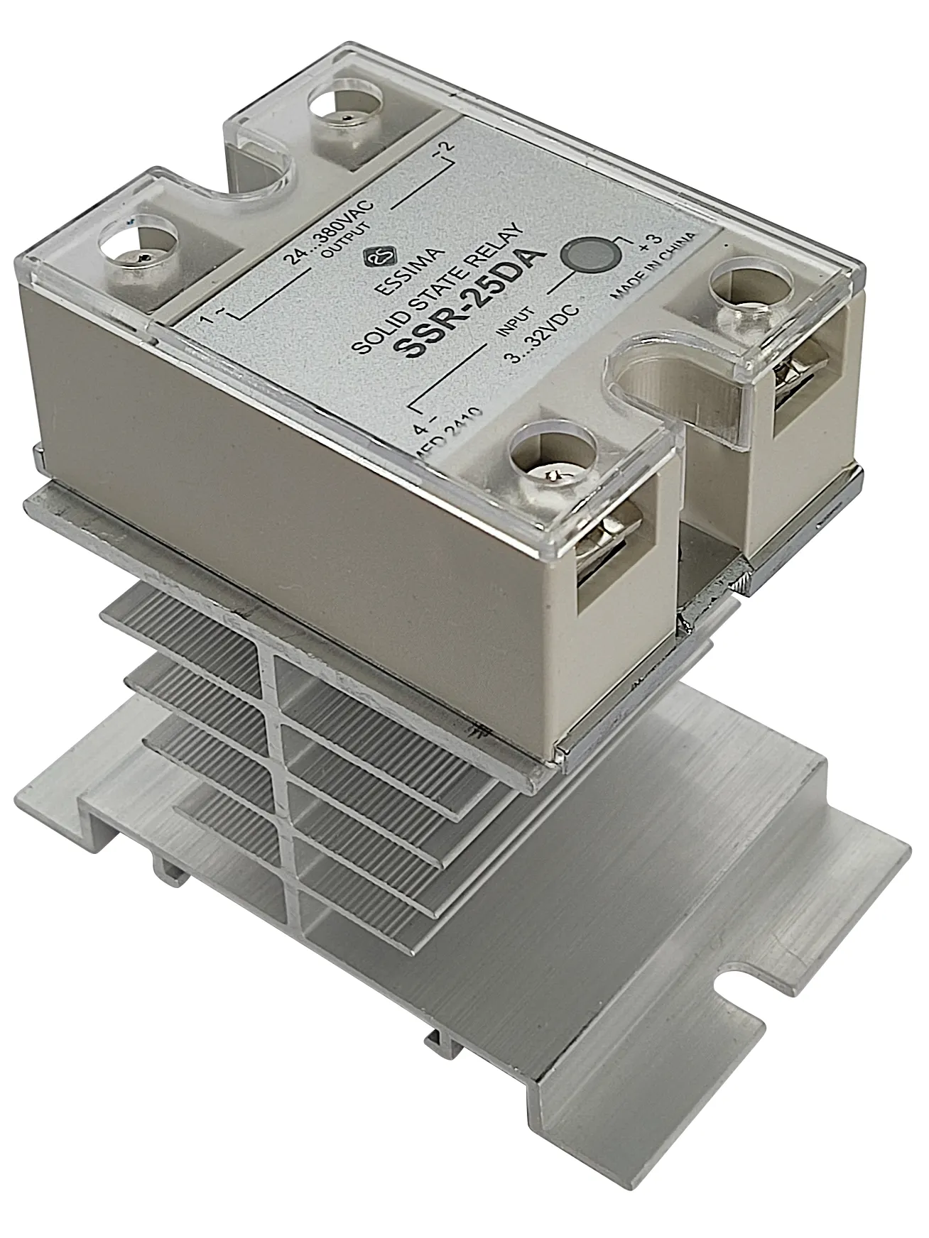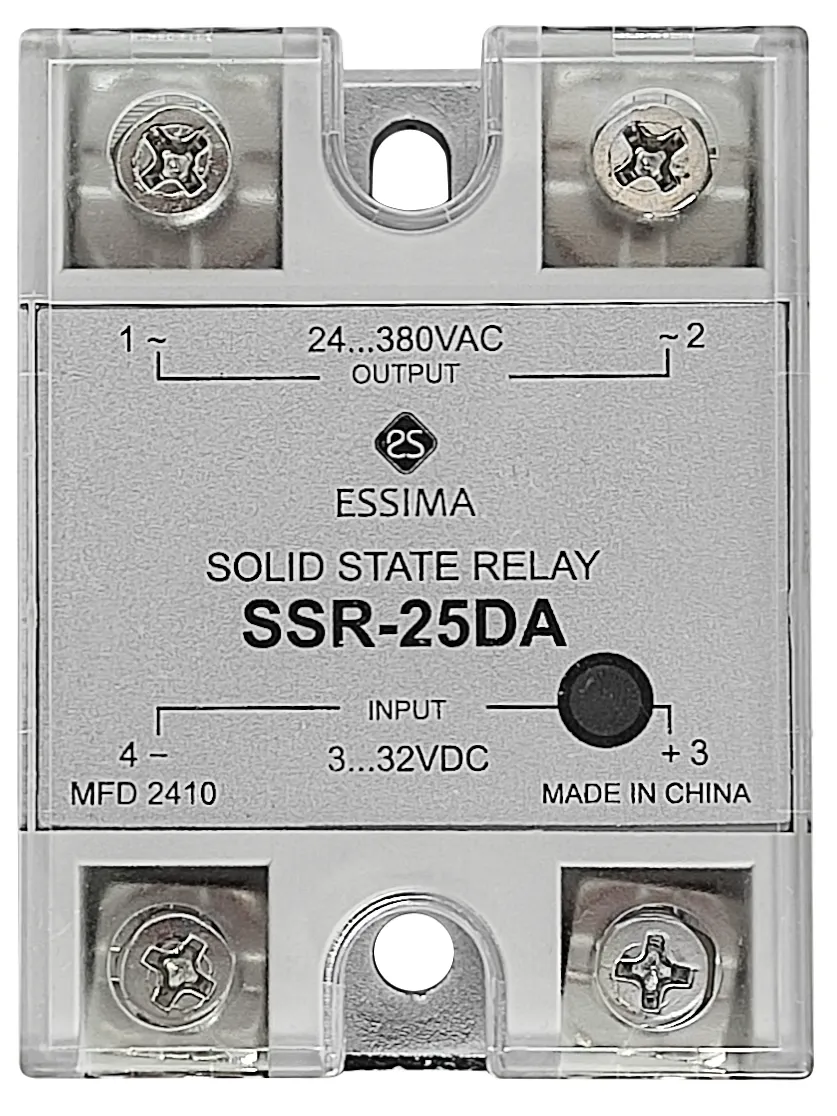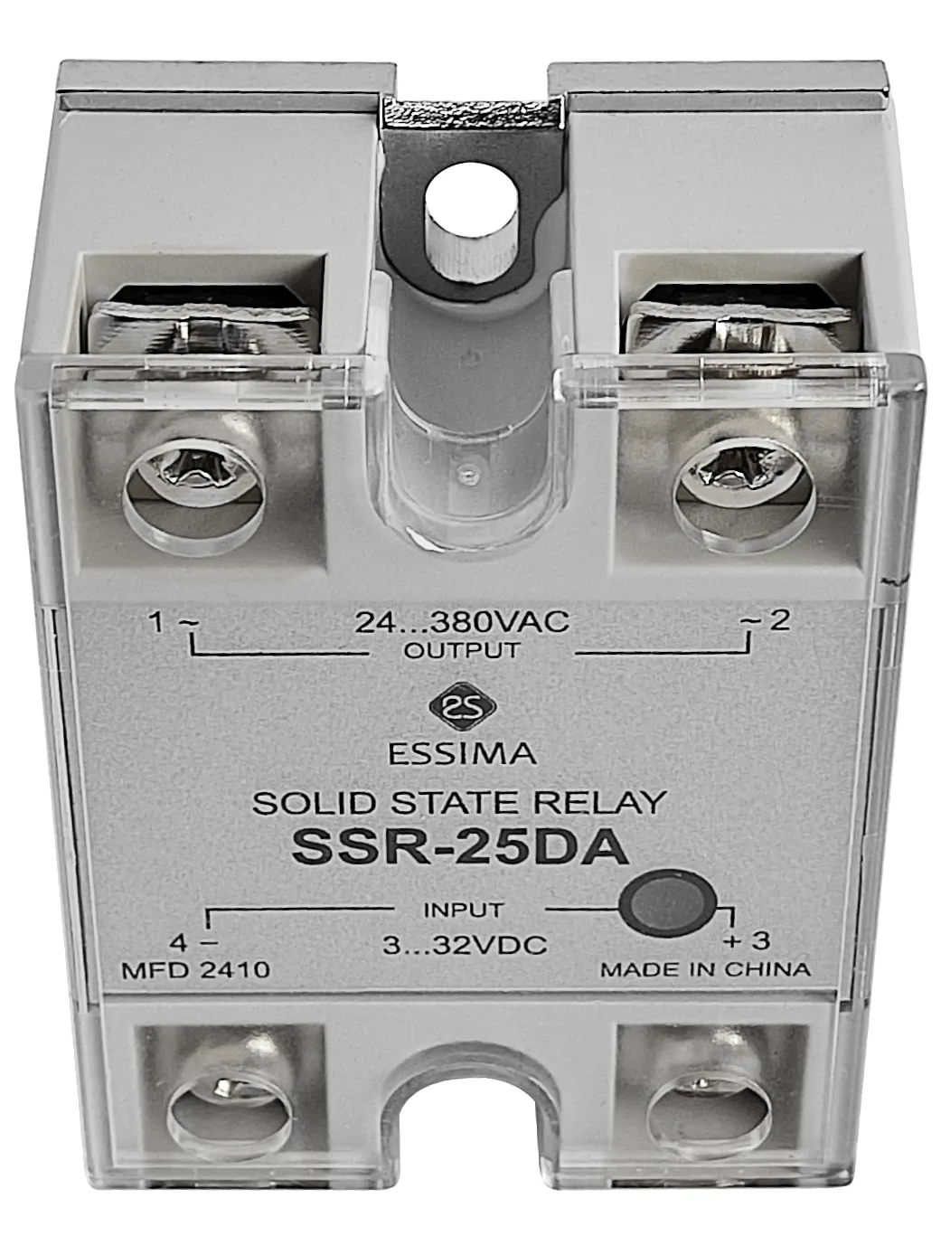 Solid state relay SSR-25DA is used for non-contact commutation of power circuits of mechanisms such as heating elements, lighting devices and low power motors.