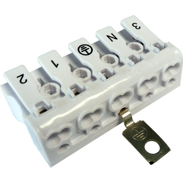 Connecting terminal KF-238-5PG is designed to connect single core and fine-stranded wires with max cross section up to 2.5mm2 in AC circuits.