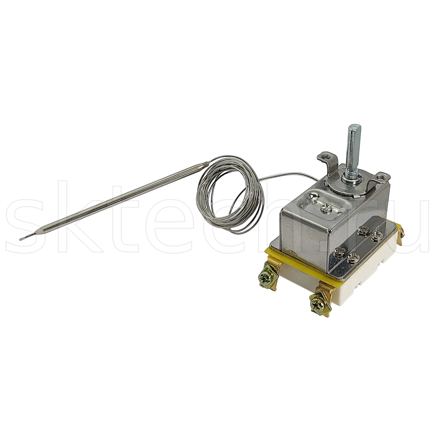 Adjustable capillary thermostat WKG-270S4 is designed to maintain the required temperature in the controllable device or its parts. A rise in temperature causes the expansion of liquid within the bulb and capillary. The liguid acts on a bellows assembly within the plastic housing to open electrical contacts. Area of application - gas ovens and other heating devices.