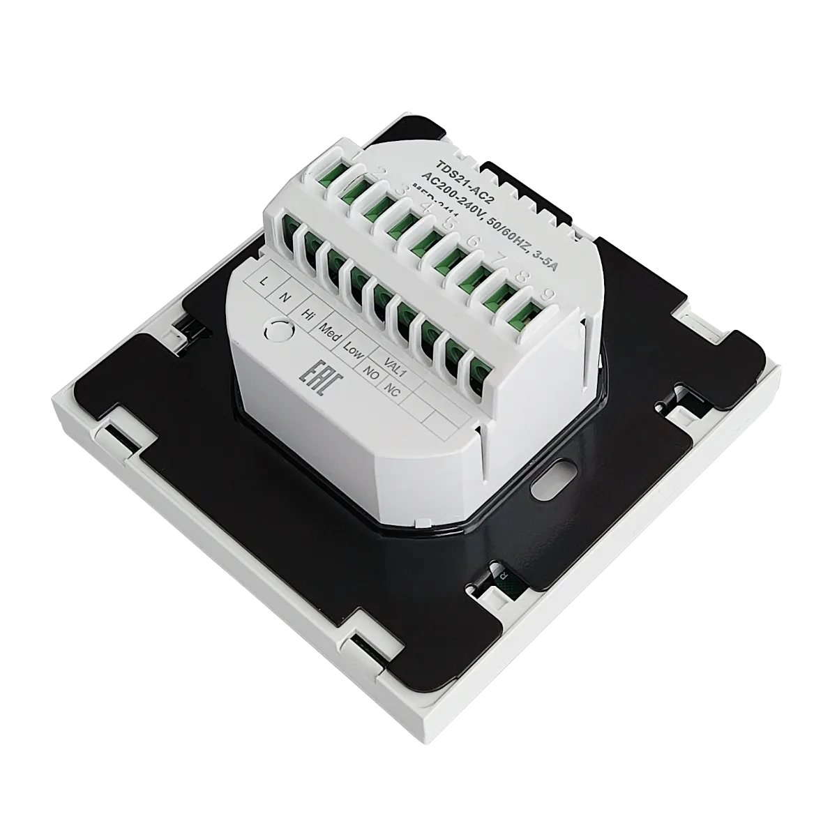 Electronic thermostat TDS21-AC2 is designed to automatically maintain the temperature in the room at a user-defined value by regulating the speed of rotation of fans of heating devices (convectors), as well as control valves with electric actuators.