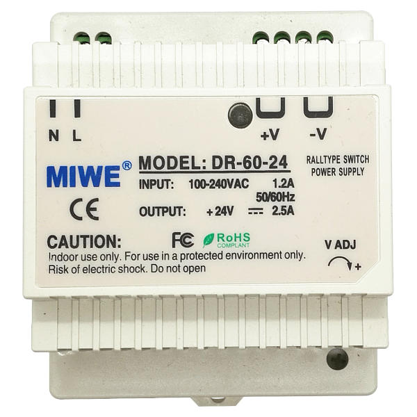Источник питания DR-60-24 предназначен для крепления на DIN рейку TS-35/7.5 или 15. Может использоваться для питания различных устройств напряжением 24В DC и максимальным током нагрузки 2,5А.