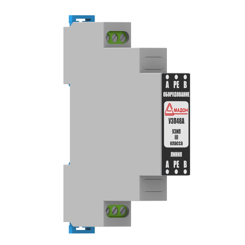 УЗП48А - устройство защиты линий вторичного питания распределительных сетей аппаратуры промышленной автоматизации, систем сигнализации и подобных устройств от импульсных перенапряжений (грозовых, электростатических разрядов и т.п.). Устройство имеет напряжение 48В переменного тока.