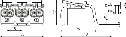 Клемма соединительная 3-контактная KF-238 предназначена для подсоединения одножильных и многожильных проводов сечением до 2.5мм2 в цепях переменного тока.