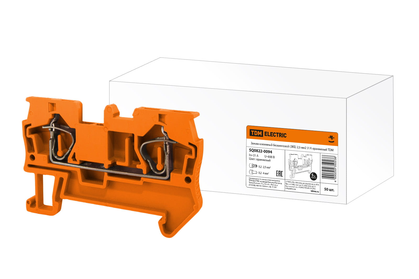 Зажим клеммный безвинтовой (ЗКБ) 2,5 мм2 31А оранжевый