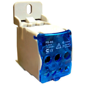 Распределительный блок РБ-80 предназначен для создания упорядоченных систем распределения в электрощитах и структурированного подключения отводных линий.