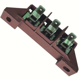 Трехполюсная клеммная колодка для подключения наконечников типа «фастон» 6,3х0,8 (Tab 250). Возможно подключения до трех фастонов к каждому полюсу. Рассчитана на номинальный ток до 40А.