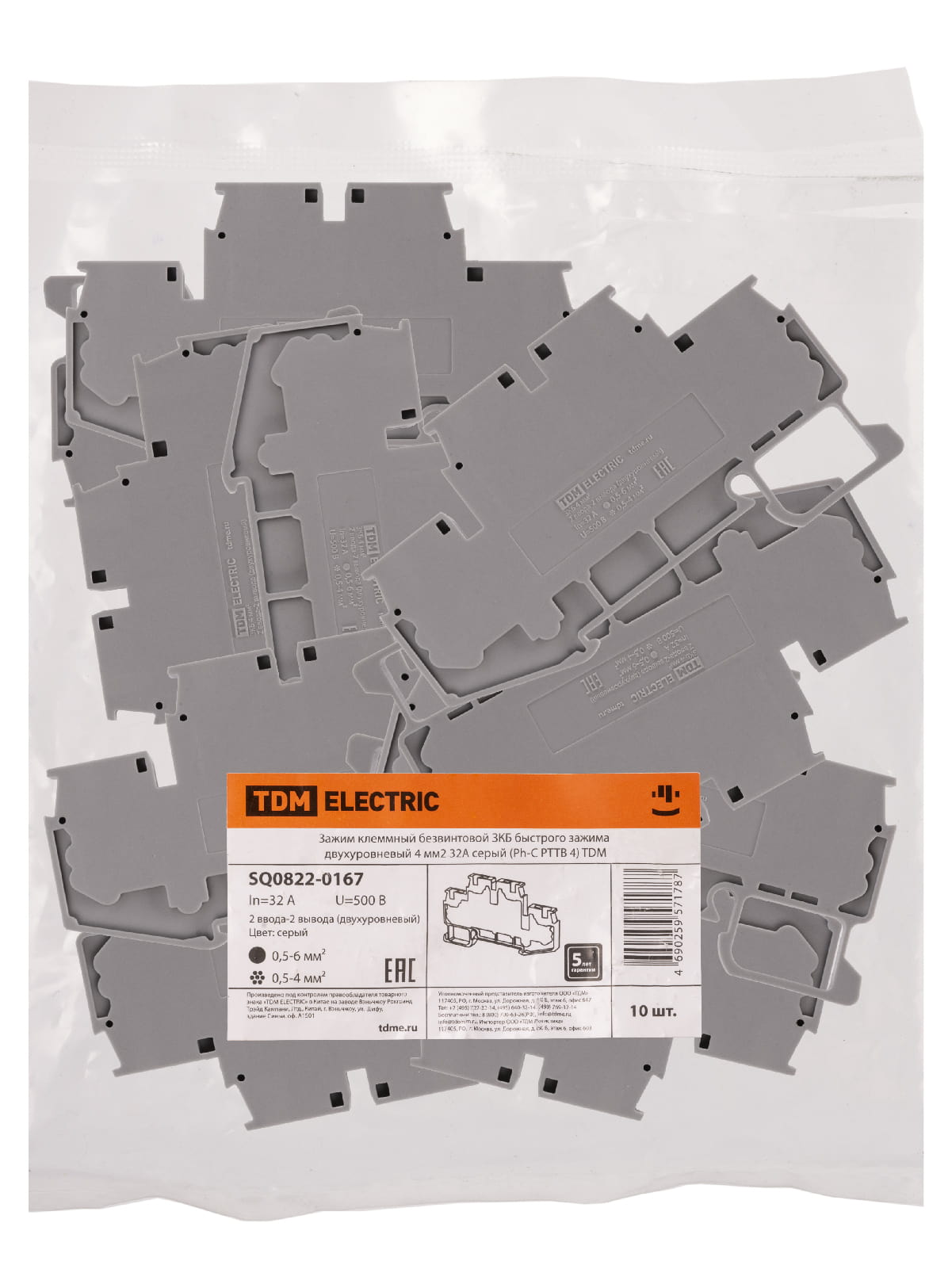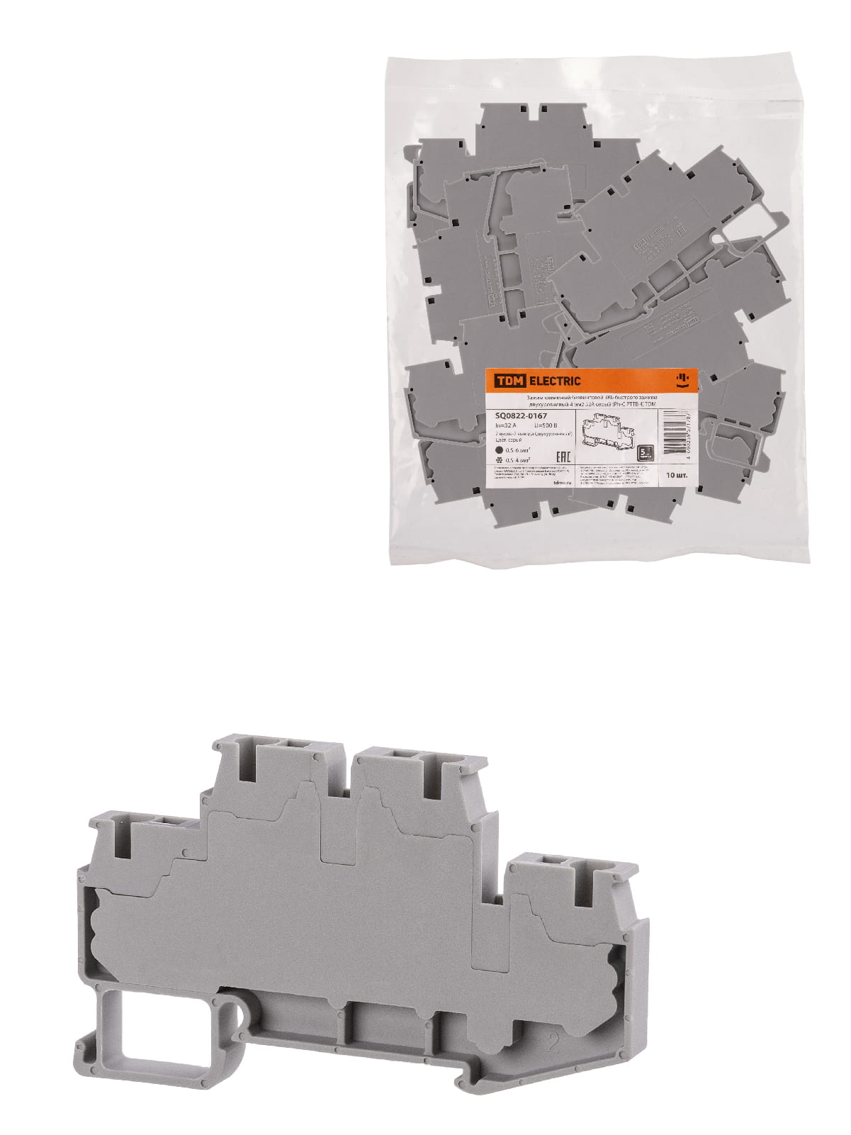 Зажим ЗКБ быстрого зажима двухуровневый 4 мм2 серый