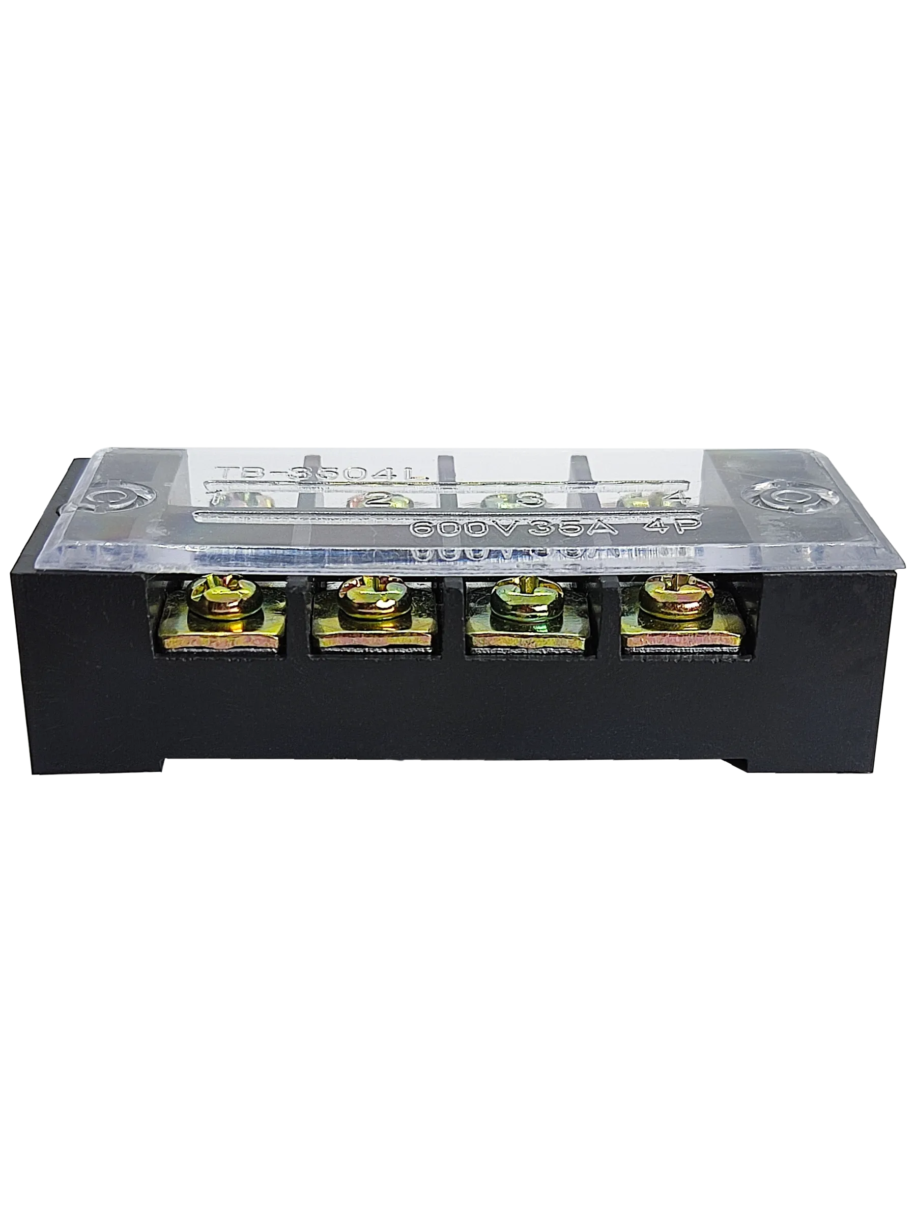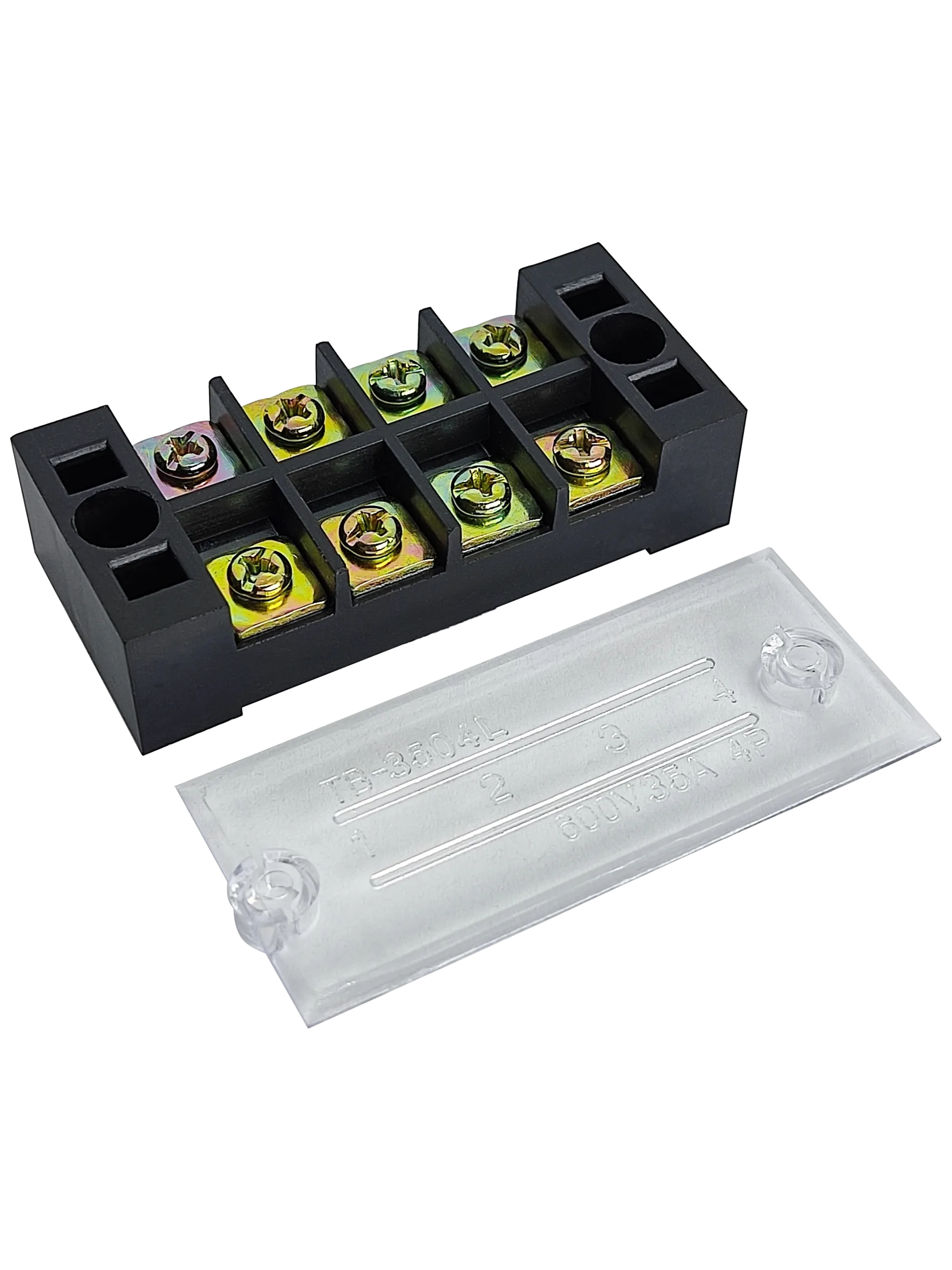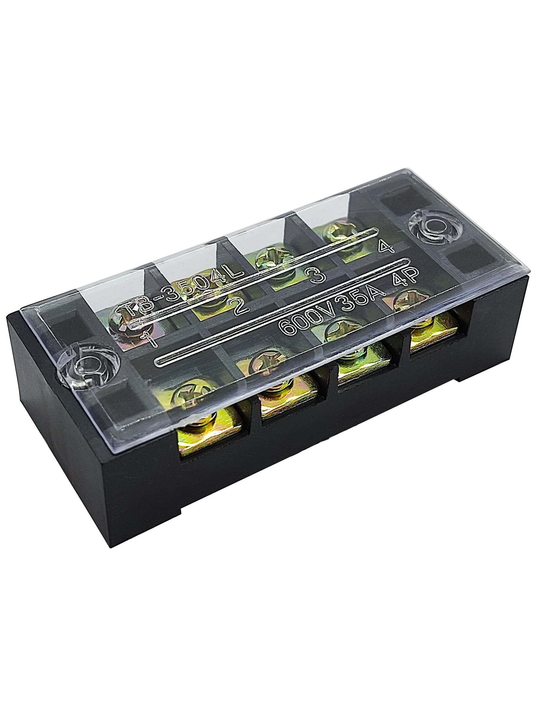 35 амперная 4 полюсная колодка выполнена из материала ABS/PC. Диэлектрическая прочность > 100MΩ