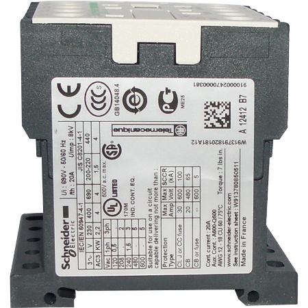| [Ie] номинальный рабочий ток | 20 A (at < 50 °C) at ≤ 440 V AC AC-1 for power circuit 9 А в ≤ 440 V переменный ток AC-3 для силовая цепь 16 A (at < 70 °C) at 690 V AC AC-1 for power circuit |