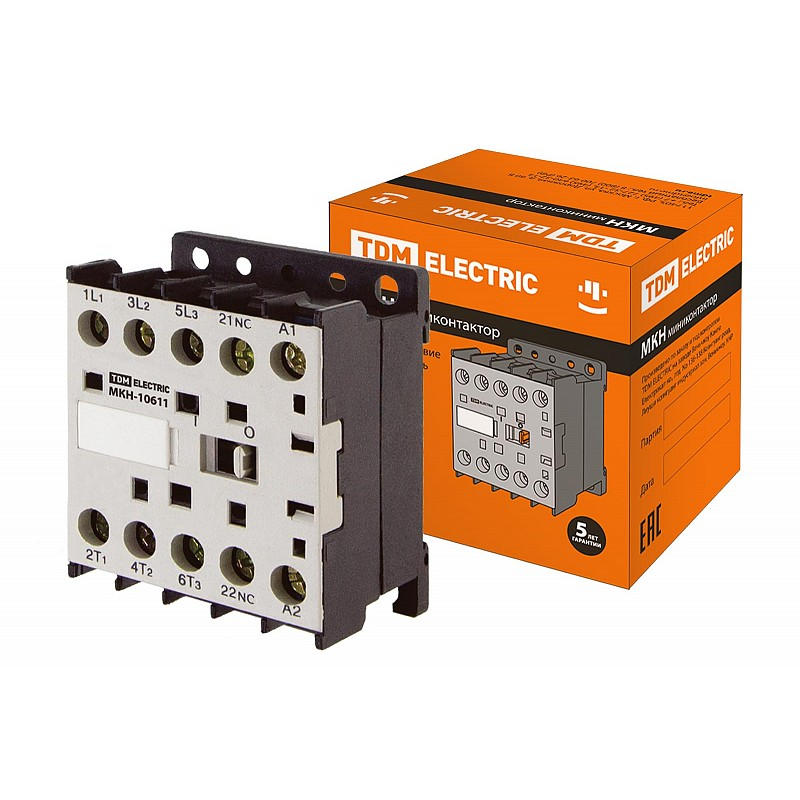 Миниконтактор МКН-10611 предназначен для пуска, остановки и реверсирования асинхронных электродвигателей с короткозамкнутым ротором мощностью до 2.2кВт (AC-3 380…415В), а также для дистанционного управления цепями освещения, нагревательными цепями и различными индуктивными нагрузками (АС-1).
