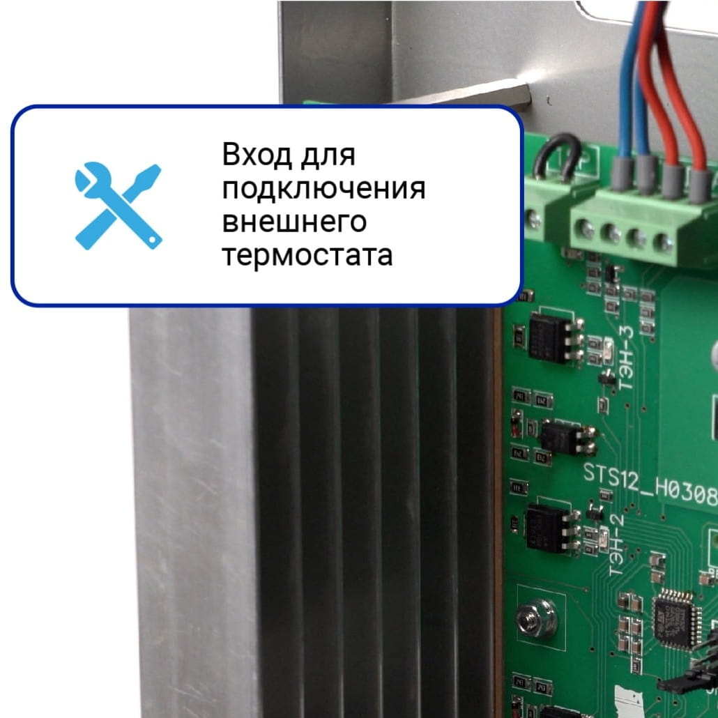 • Бесшумность. В отличие от переключения релейного типа, симисторное управление блоками ТЭНов полностью бесшумно.