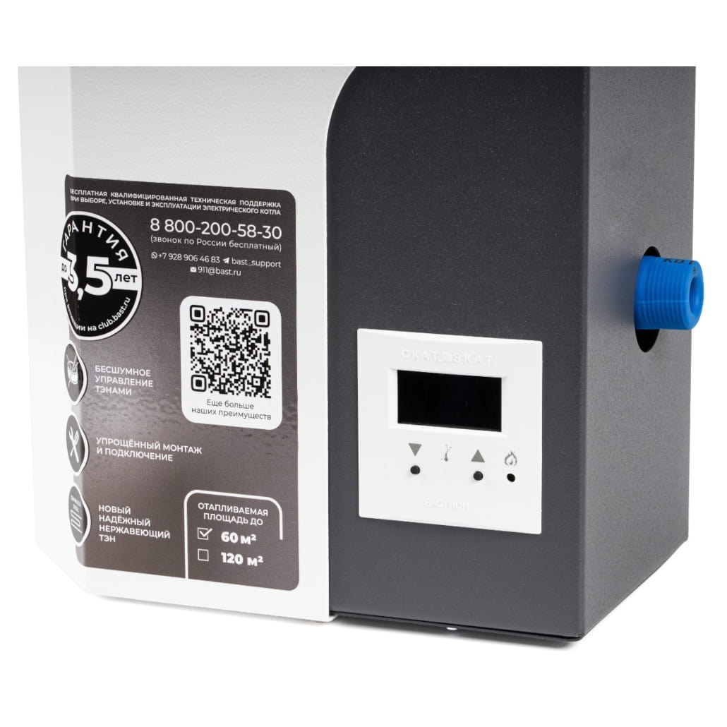 Электрокотел SKAT SILVER STS — однофазный 6кВт электрический котёл с симисторным управлением. Чередование работы ТЭНов для их равномерной загрузки и увеличения срока службы. В отличие от переключения релейного типа, симисторное управление блоками ТЭНов бесшумно.