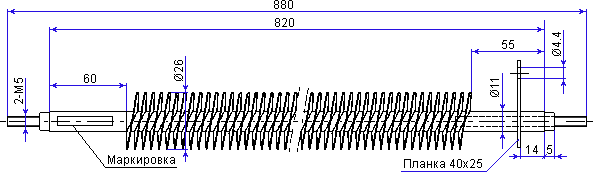Нагревательный элемент BHC-18.681.011 трубчатый оребренный из нержавеющей стали стали предназначен для нагрева воздушных сред.