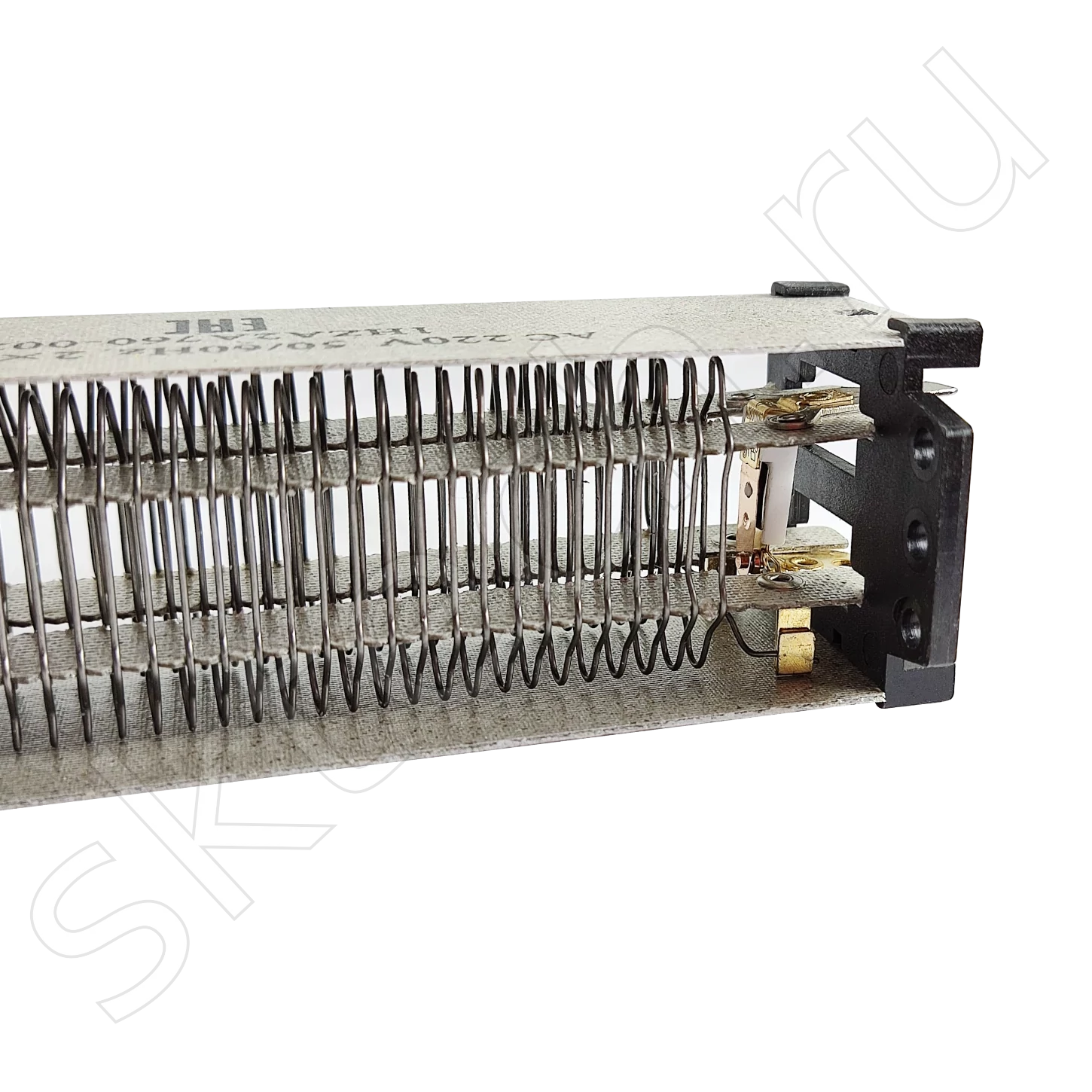 Миканитовый нагреватель 1HZA2A760-008 общей мощностью 3300Вт применяется в системах обогрева воздуха (тепловые завесы, сушильные шкафы, камины и т.п.). Состоит из двух нагревательных спиралей со слюдяной поддержкой. Спирали защищены снаружи слюдяными пластинами. Для предотвращения перегрева нагревательного элемента установлен защитный термостат.