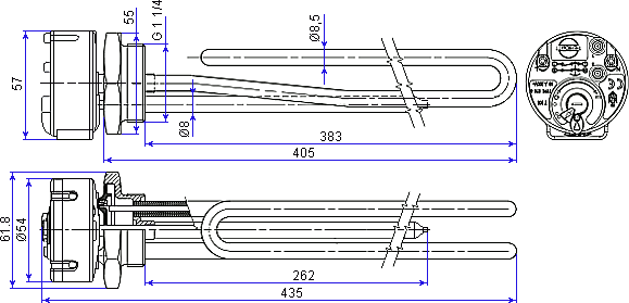 Нагревательный элемент серии RT с установленным стержневым термостатом RTS 3 300 используется для нагрева воды в бойлерах накопительного типа.