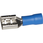 Разъемы плоские изолированные ("fast-on") устанавливаются на проводниках, сечением 1.5 - 2.5 мм2, опрессовкой. Служат для разъемного контактного соединения проводов и кабелей между собой и присоединения их к электрическому оборудованию. Наконечники имеют высокую надежность и обеспечивают хороший электрический контакт. Изоляция из поливинилхлорида с температурой эксплуатации -25°С…+70°С. Изолирующая манжета имеет расширенный конусообразный вход, для облегчения ввода кабеля.