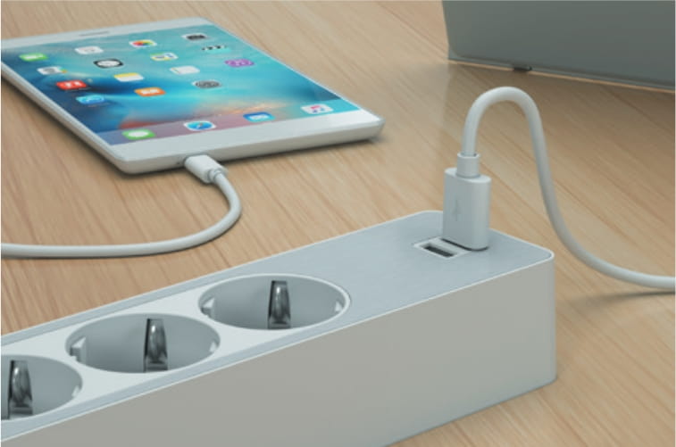 Удлинитель сетевой белый. Длина - 3 метра. Максимальная мощность 3670 Вт. 5 розеток с защитными шторками и заземлением. 2 USB разъема с максимальным током нагрузки 2,4А. Общий выключатель с подсветкой.