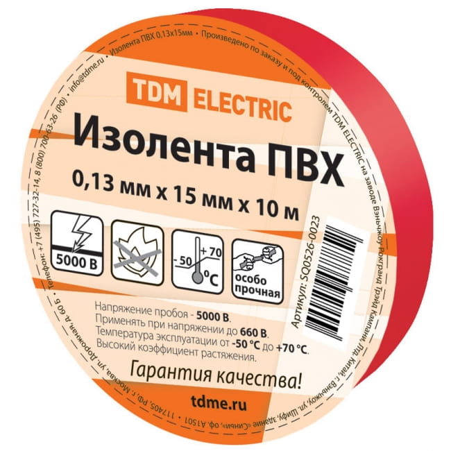 Изолента ПВХ 0,13х15мм Красная 20м TDM