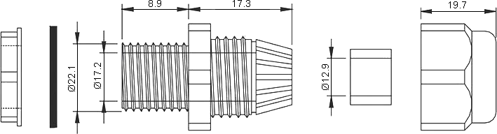 Размеры кабельного ввода PG-16 Grey IP68