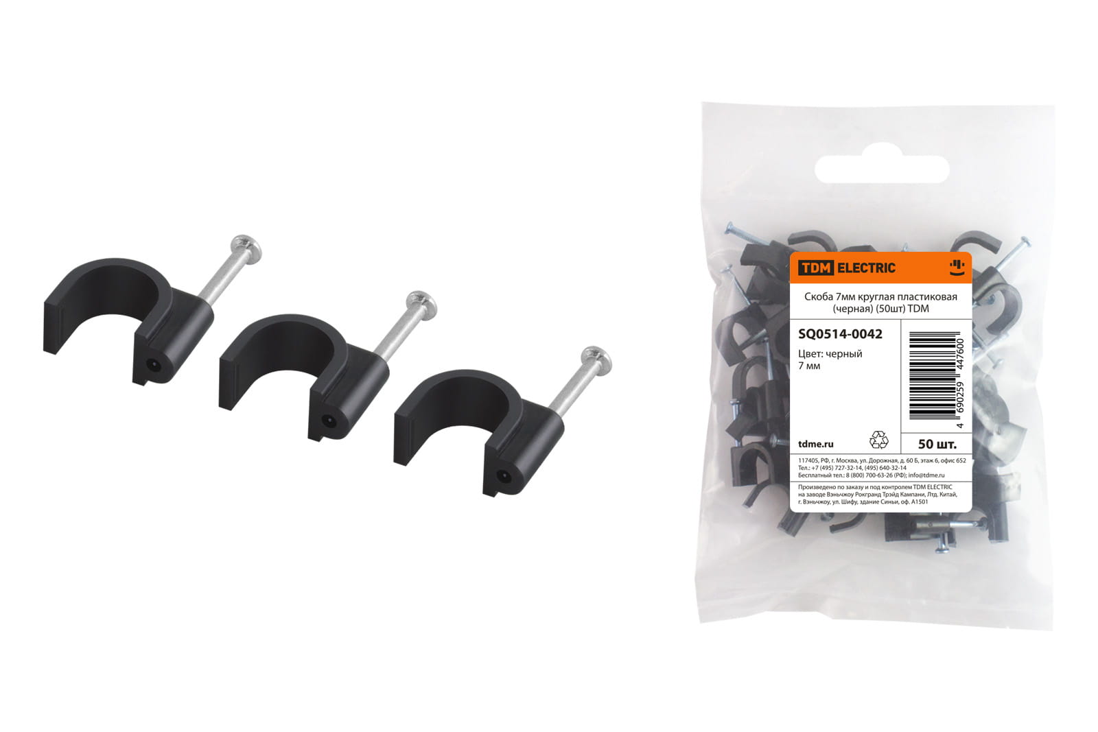 Скоба 7мм круглая пластиковая (черная) (50шт)