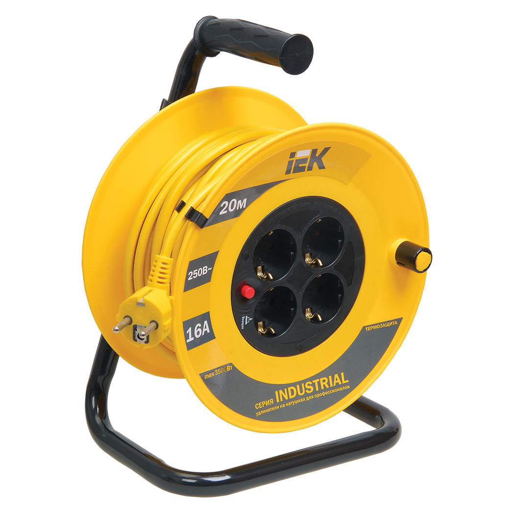 Удлинитель УК20 катушечный серии Industrial на 4 розетки с заземлением, длина кабеля 20 метров. Подходит для использования на строительной площадке, на садовом участке, в малом бизнесе, в парках с аттракционами, в промышленности и в быту. Тепловое реле защищает от превышения максимально допустимой подключаемой нагрузки. Изолирующая прорезиненная ручка обеспечивает безопасную и комфортную эксплуатацию.